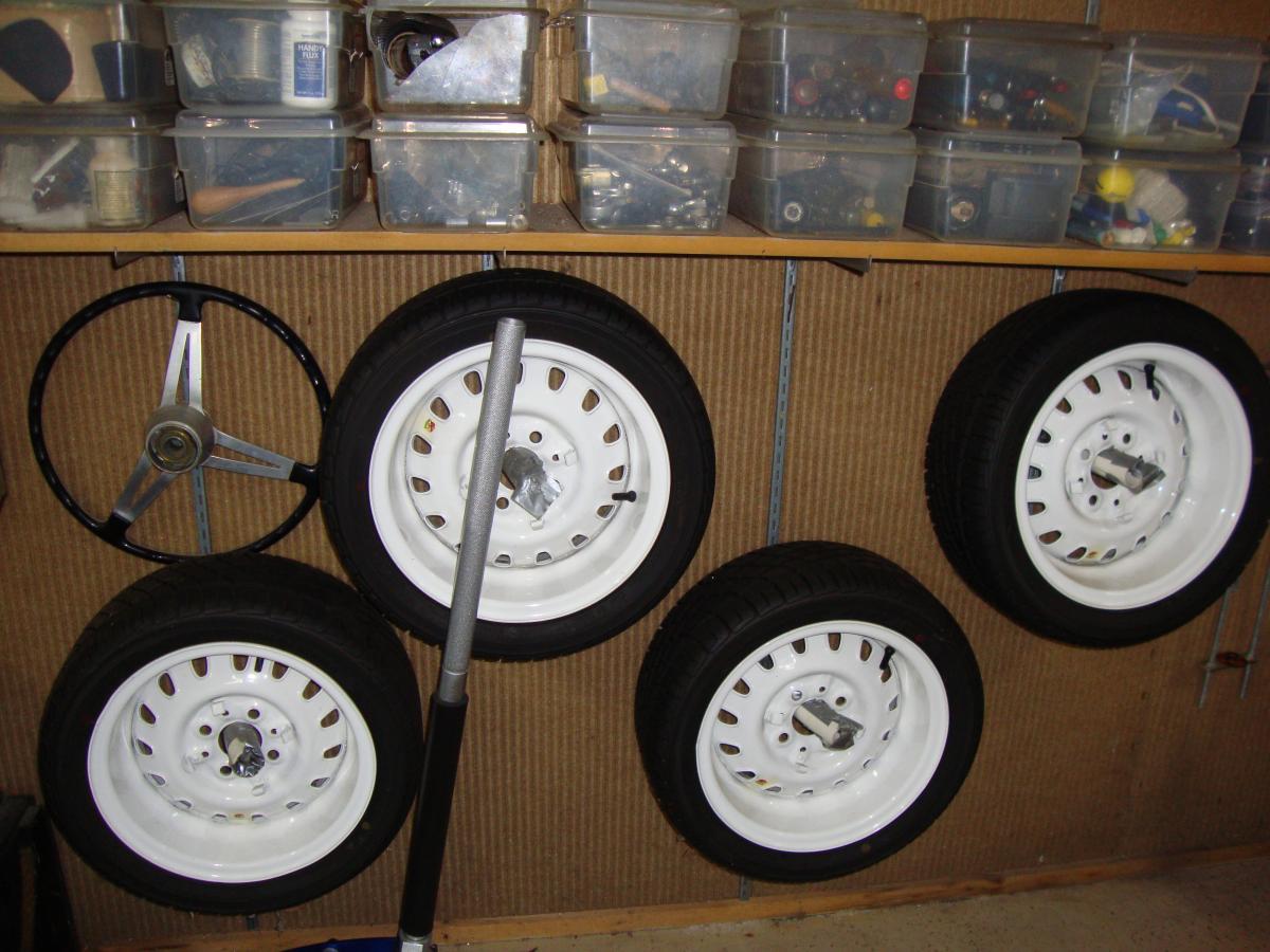 A complete set of original instruments. --- The original steering wheel. --- 4 spare wheels and tires, 175/50/R13 Yokohama A008 mounted on Abarth OT-1000 steel wheels. --- A set of Yokohama 175/50//R13 A569 are on the car now. --- A complete set of spare gear sets for Hewland gearbox. --- spare wing mirrors, there are 3. --- There is a spare reconditioned cylinder head for the OT motor. --- There’s a bag full of Fiat wheel lug bolts. --- There are several voltage regulators.--- There are many other boxes of smaller parts too numerous to list separately.